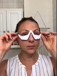 Delikatnie przesuwaj urządzenie po okolicy oczu, upewniając się, że jest całkowicie pokryte. Aby uzyskać najlepsze rezultaty, stosuj urządzenie regularnie w ramach codziennej pielęgnacji skóry